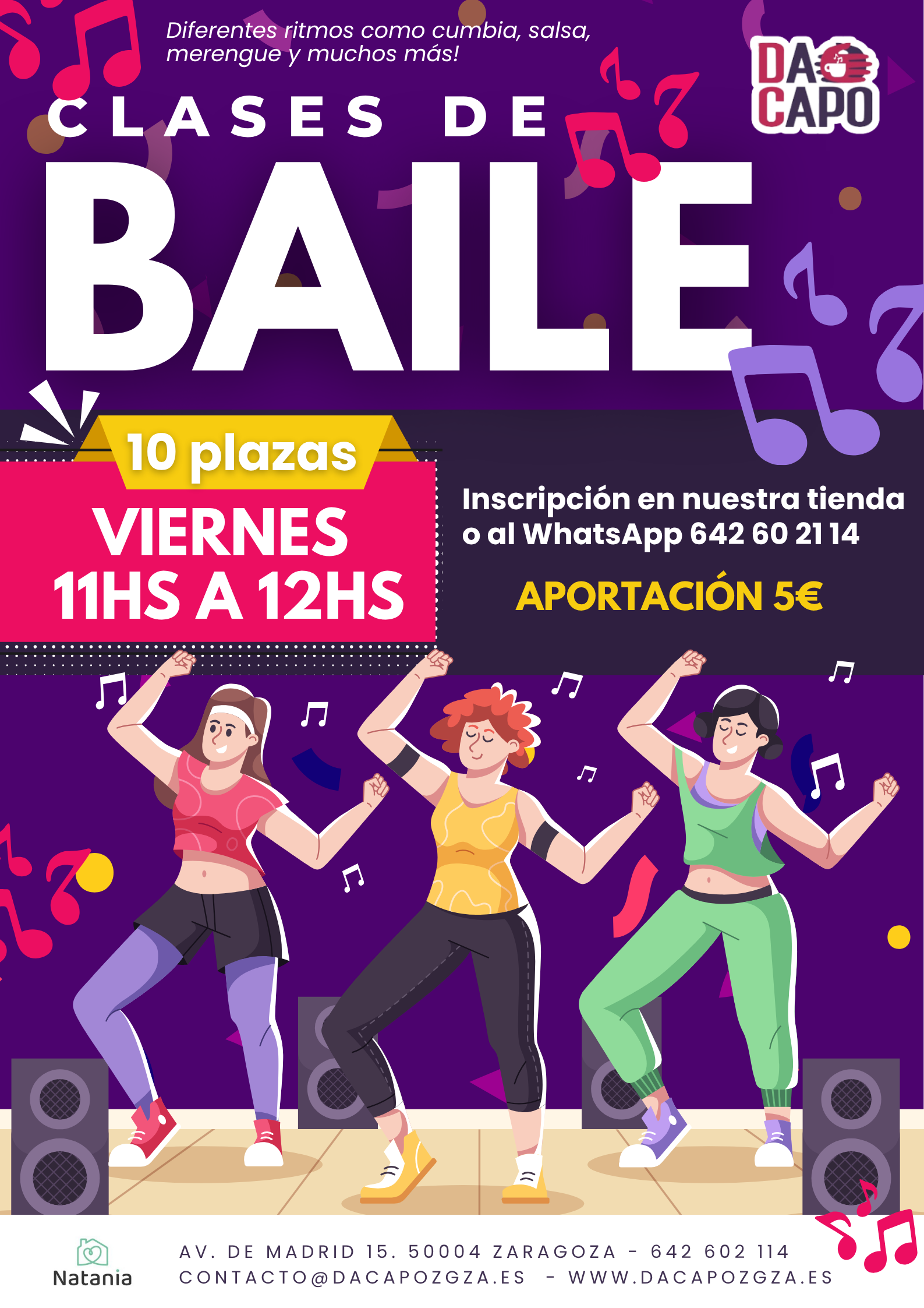 Si estas interesada puedes escribirnos al WhatsApp 642 602 114 o al correo electrónico contacto@dacapozgza.es