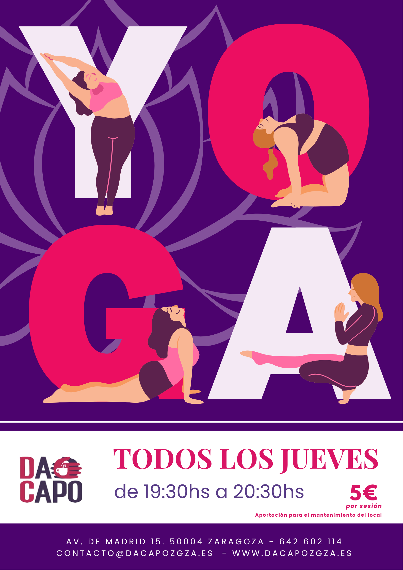 Aportación por sesión 5 euros para gastos de material y del espacio.